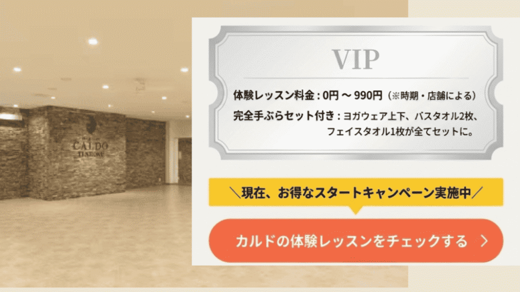 これは私の経験での感じですが、入会の説明を受ける時も、レッスン後も、ほとんど物販などの勧誘がありません!例えば、LAVAは物販の勧誘で声を掛けられることが多いのですが、カルドに関してはほとんどありません!