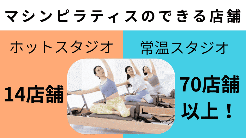 ホットスタジオではありませんが、ホットヨガとマシンピラティスを楽しめる店舗は60以上あります。ヨガとマシンピラティスを併用して行うことで、ダイエット効果を高めることも期待できます。(※2026年1月現在)