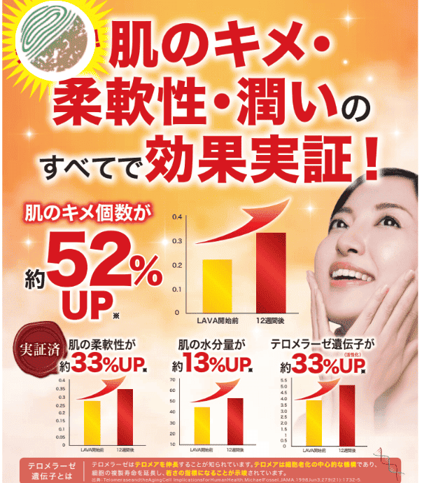 実際に現役LAVAインストラクター35名が、3か月間検証を行った結果、長寿遺伝子と呼ばれる「サーチュイン6」を活性化する傾向があることを確認。