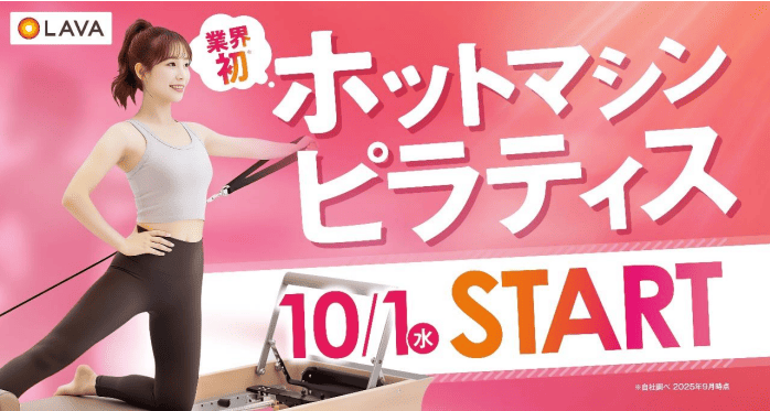 (参考記事)PR TIMESより:LAVAから“ホット×マシンピラティス”の新プログラムが誕生!業界初※の「ホットマシンピラティス」を10月より本格導入開始