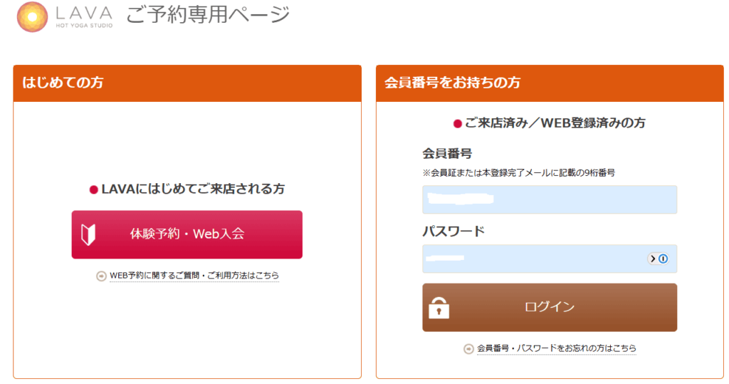 そうです。会員NOが永久に残っているので、LAVA公式HPに「ログイン」して申し込まないといけないんです。
