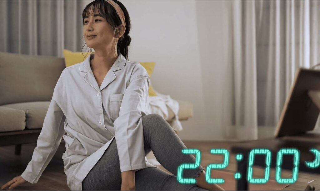 - 寝る前に1日の疲れをリセットするため、10分間リラックスヨガ