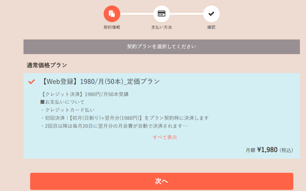 初回登録時に「初月分(日割り)+翌月分」2か月間の支払いが必須になってます。